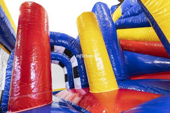 Multi -Play -Schloss mit Hindernissen, Kletterwand und Rutschen