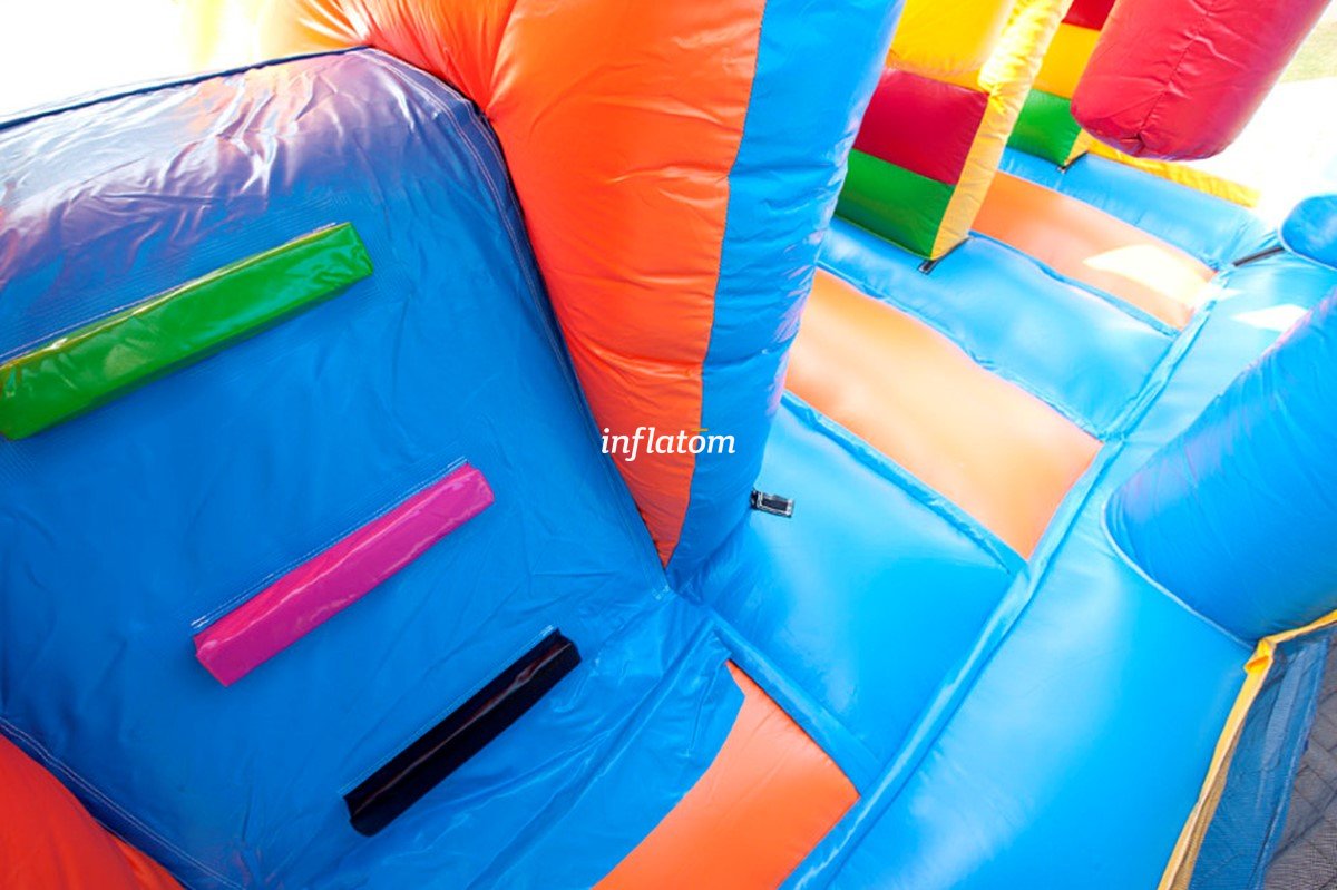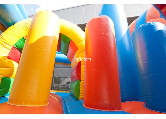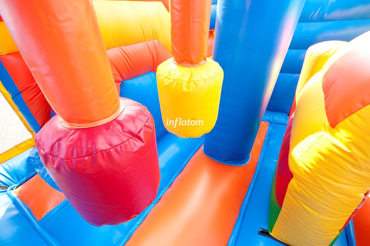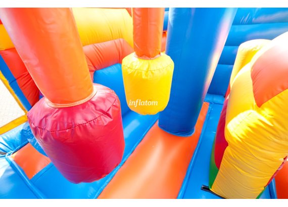 Multi -Play -Schloss mit Hindernissen, Kletterwand und Rutschen