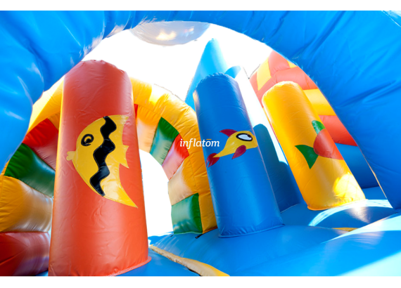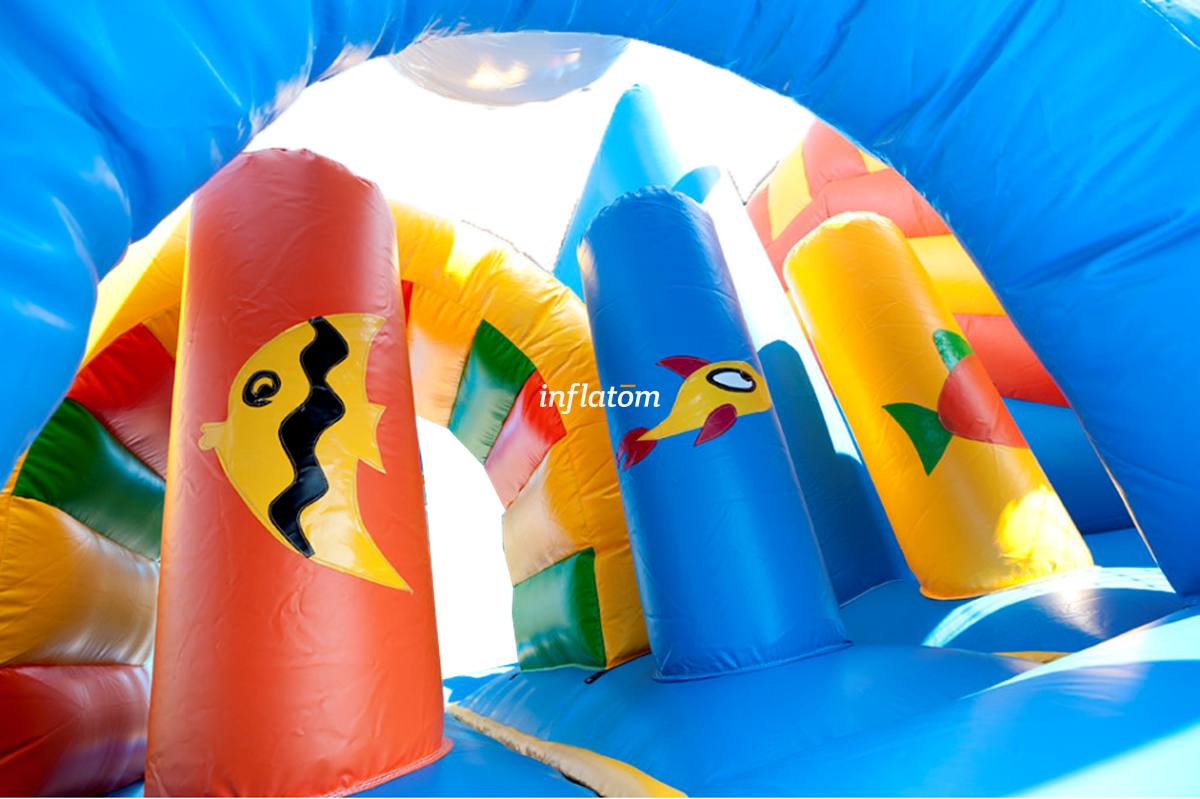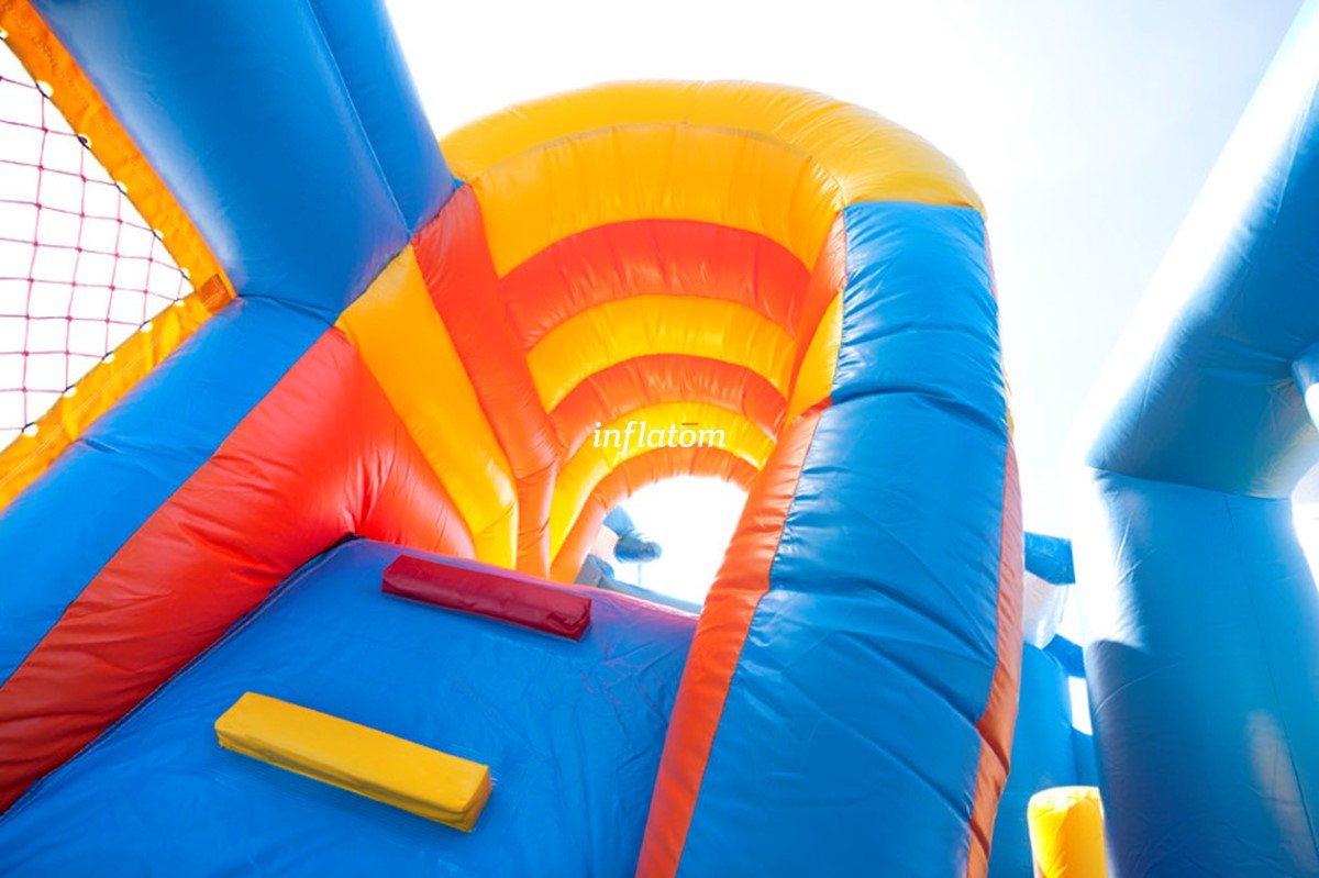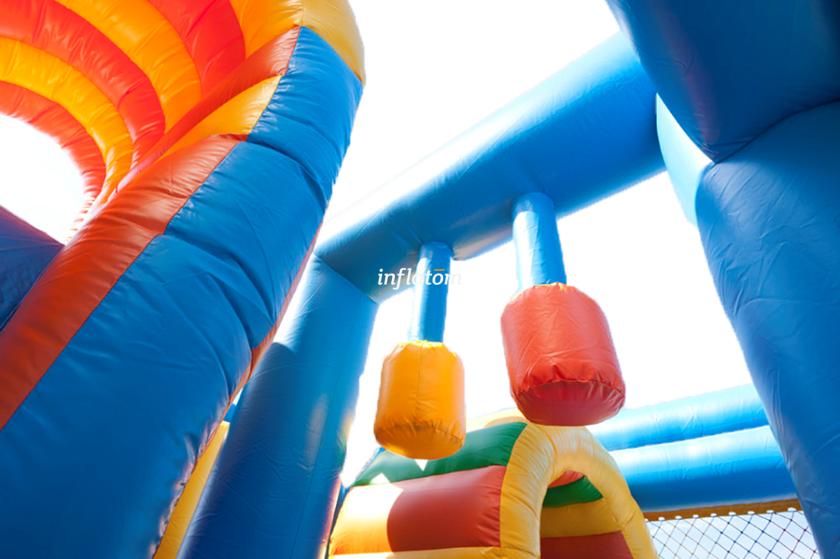 Multi -Play -Borg mit Hindernissen, Kletterwand und Rutschen